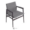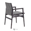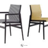 Стул имеет металлический каркас и подлокотники, обтянутые кожей, а также сиденье и спинку, выполненные из дерева. Кресло доступно в различных отделках, включая кожу и ткань.