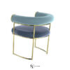 Стул имеет металлическую раму, покрытую золотистым оттенком. Сиденье и спинка стула выполнены из мягкой кожи или ткани.