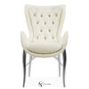 Стул имеет каркас из стали с покрытием из хрома или золота. Сиденье и спинка обтянуты качественной кожей или тканью, что обеспечивает высокий уровень комфорта и приятный на ощупь материал. На заднюю спинку сиденья нанесена декоративная кисточка из кожи и латуни.