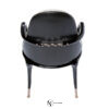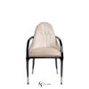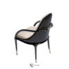 Стул обит сочетанием из ткани и кожи и оформлен в стиле арт-деко. Ножки и подлоктники стула изготовлены из массива дерева и выполнены в черной лакированной отделке. Наконечники ножек изготовлены из металла и могут быть выполнены в хромированной, бронзовой или золотистой отделке.