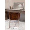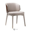 Стул из кожи или ткани со спинкой из корня ореха. Каркас из массива дерева и фанеры. Обтянутые кожей ножки (с полированными или матовыми алюминиевыми наконечниками и насадками) выполнены из массива бука. Основание несущей конструкции выполнена из дерева в кожаной обивке. Сиденье и спинка из изогнутой фанеры с наполнением из полиуретана; спинка из корневой части дерева украшена инкрустацией шпоном ясеня и покрыта прозрачным глянцевым лаком в отделке 100 gloss. Декоративная тесьма по краям сиденья и спинки. Металлические детали предлагаются в различных вариантах матовой отделки.