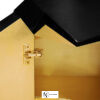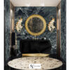 Шкаф для ванной Diamond привлекает внимание, где бы он ни стоял. Его деревянная конструкция покрыта черным глянцевым лаком, который прекрасно контрастирует с ее внутренней отделкой, покрытой сусальным золотом. В этот красивый предмет встроена овальная раковина из стекла с полупрозрачной черной отделкой, которая придаст невероятную роскошь любому дизайну ванной комнаты.
