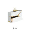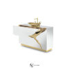 Вдохновением для создания Lapiaz послужили типичные карстовые образования, возникающие в результате растворения известняковых пород. Тумба для ванной Lapiaz Single, выполненная из полированной латуни и дополненная богатой эстетикой, а также набор из одной дверцы и двух выдвижных ящиков, отделанных шпоном корня тополя, — это заявление, которое выделяется в дизайне интерьера вашей ванной комнаты.