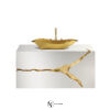 Вдохновением для создания Lapiaz послужили типичные карстовые образования, возникающие в результате растворения известняковых пород. Тумба Lapiaz Suspension, выполненная из полированной латуни и дополненная богатой эстетикой, а также набор из одной дверцы и двух выдвижных ящиков, отделанных шпоном корня тополя, — это заявление, которое выделяется в дизайне интерьера вашей ванной комнаты.